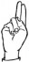На ћирилици написано ГОРАН БУМБАРЕВИЋ састоји се из 15 слова [?]. Исписано ћириличном једноручном азбуком за глувонеме: